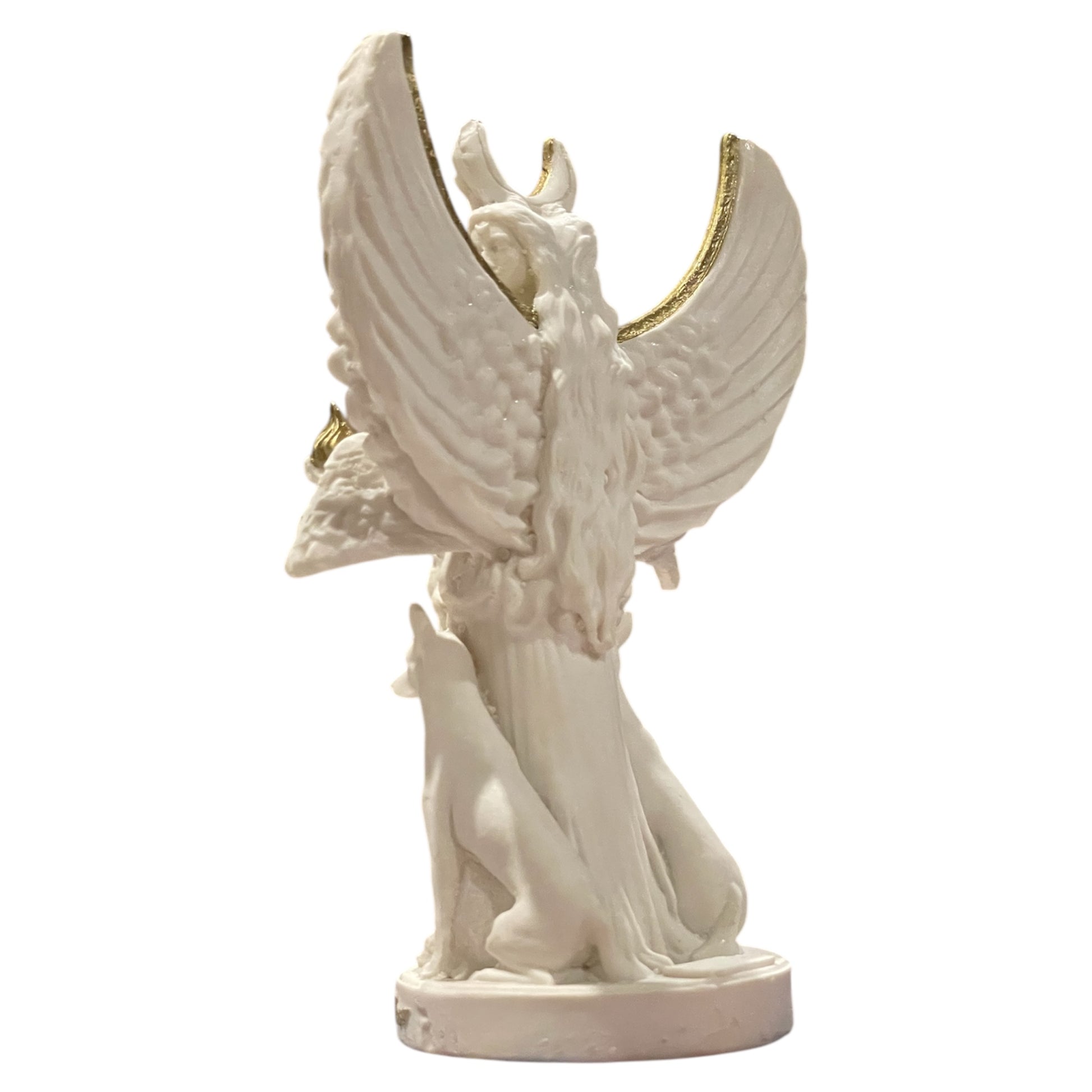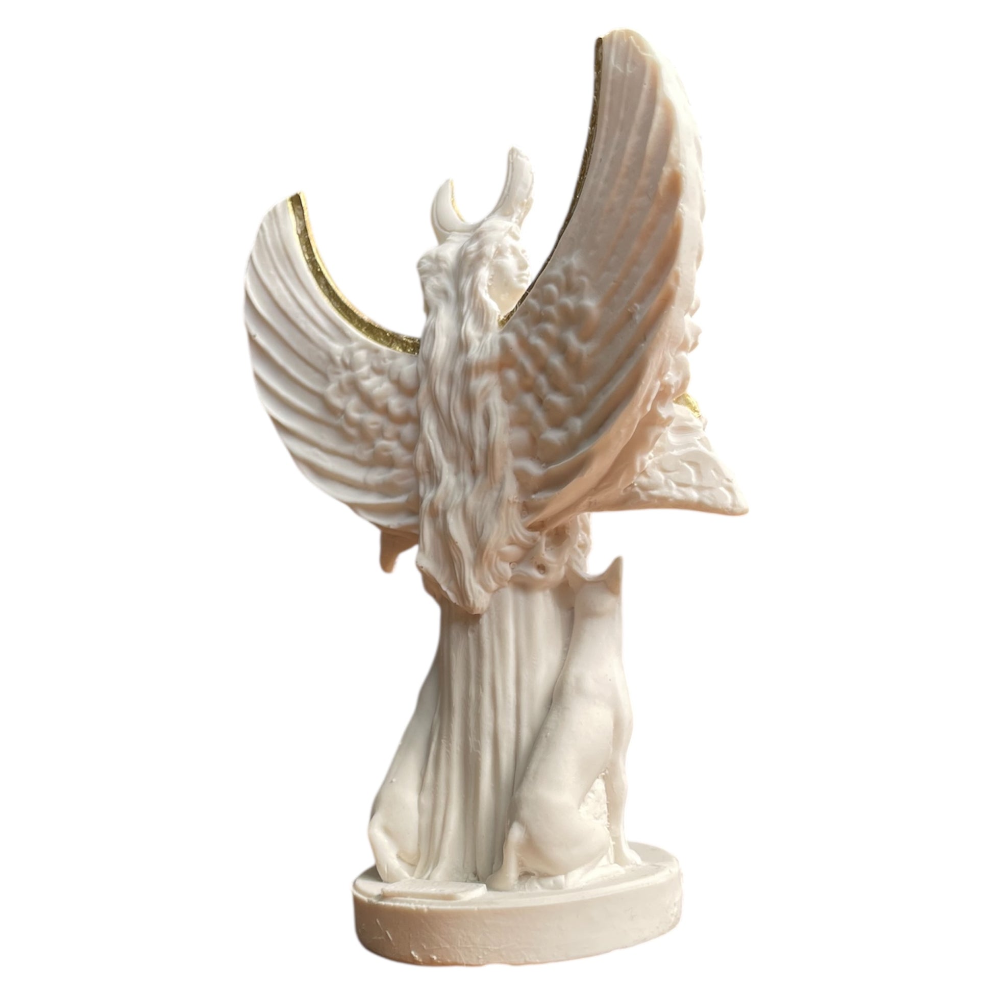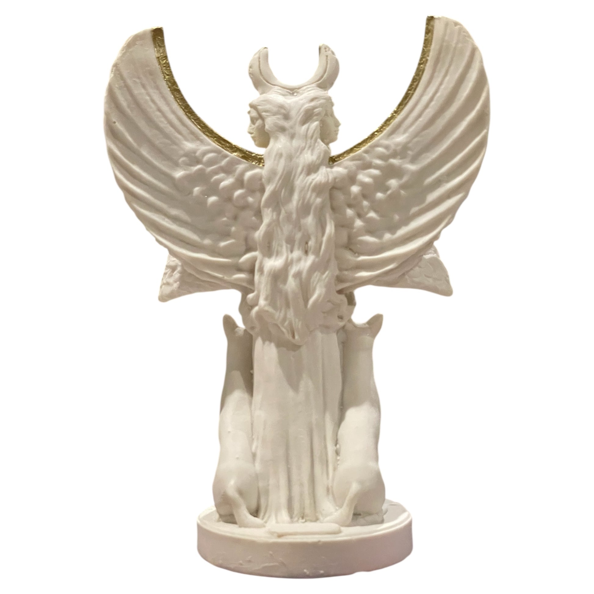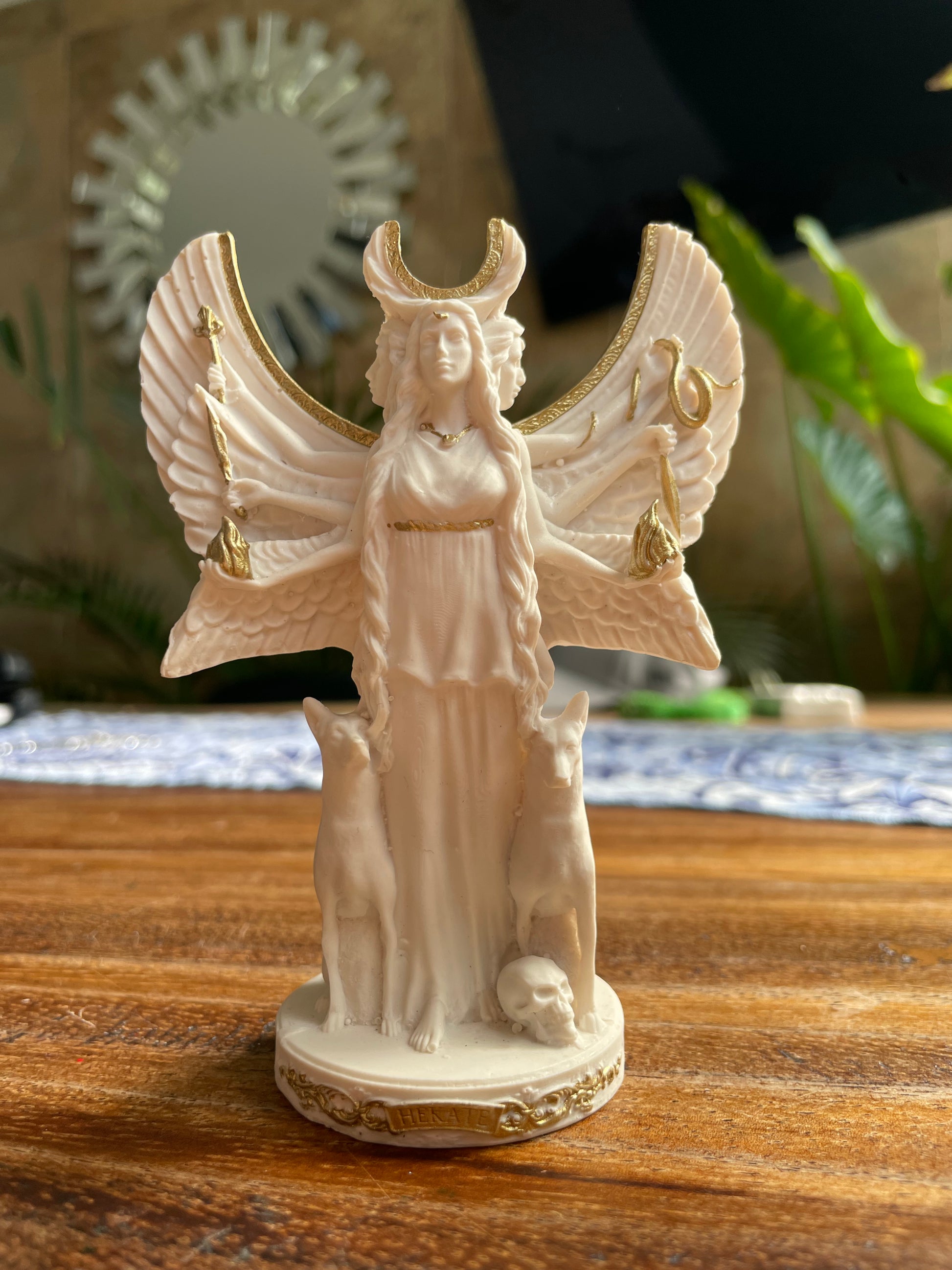 Escultura de la Diosa Hécate elaborada en resina de alta calidad. Con dimensiones precisas de 12 cm de alto, 9 cm de ancho y 5 cm de profundidad, esta pieza en color blanco captura la esencia de la deidad griega asociada con la magia, las encrucijadas y la protección. Ideal para altares, espacios rituales o como elemento decorativo para conocedores de la tradición esotérica.