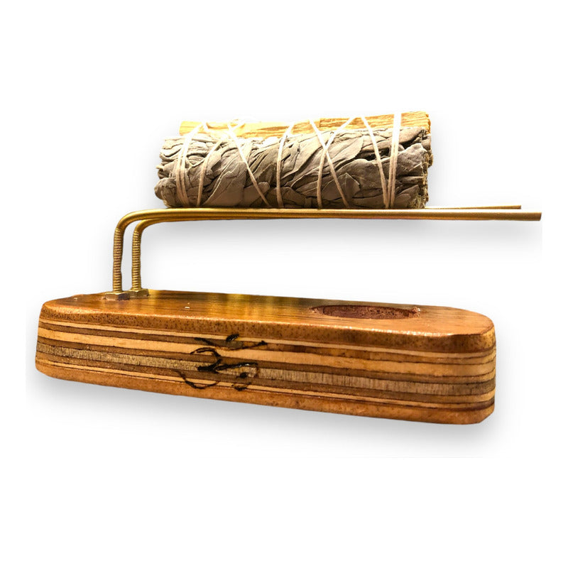Sahumerio Base Porta Sahumerio En Madera Con Latón Madera Lisa