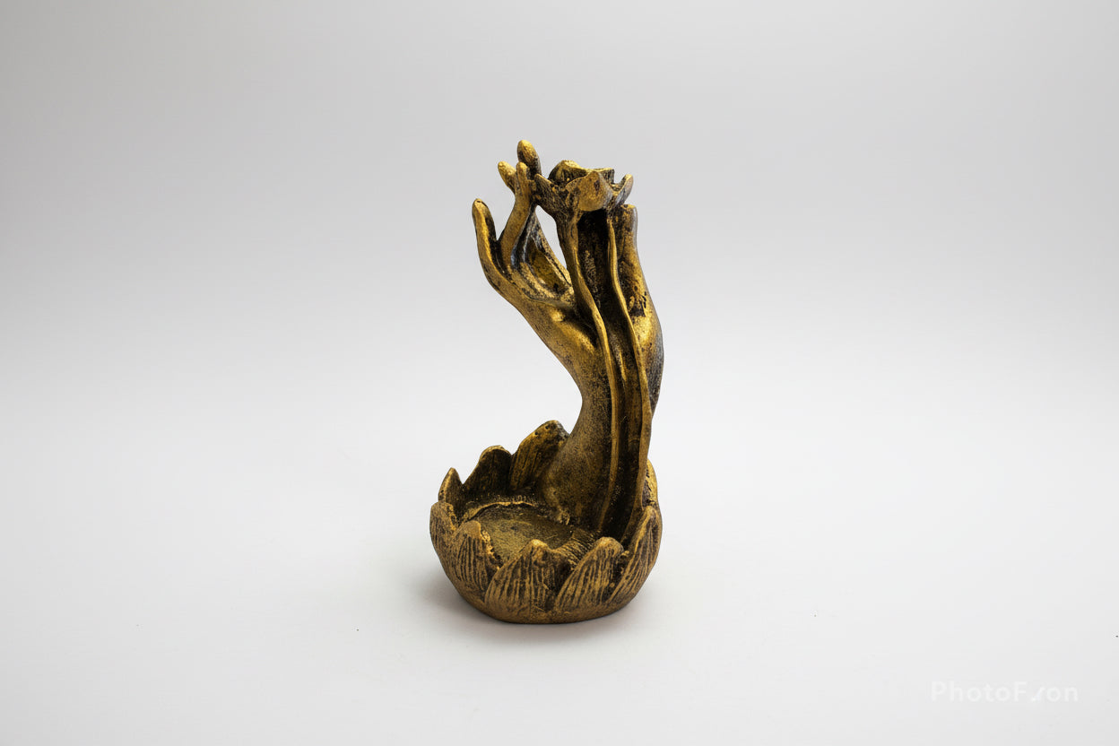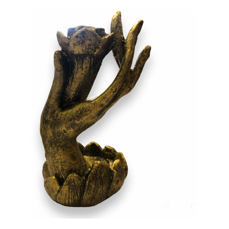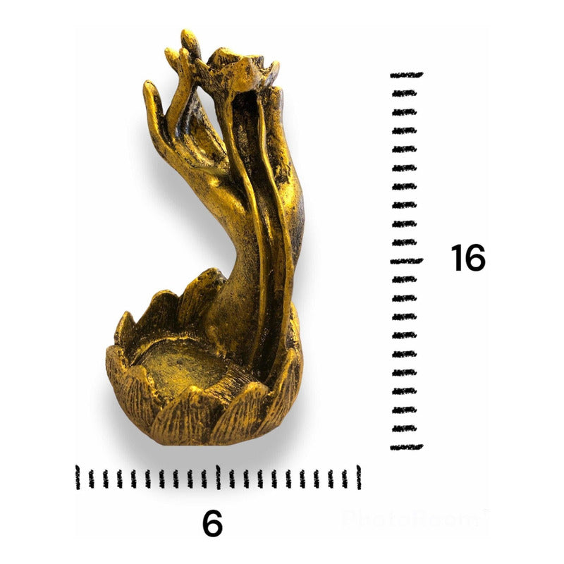 Mano Cascada De Humo Porta Incienso Dorado Oscuro