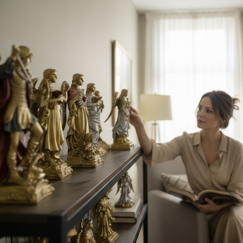 Elevando el estilo y la espiritualidad de tu espacio, las esculturas de resina de arcángeles de 24 cm de altura son una obra que fusiona arte y devoción. Con un diseño meticuloso y un acabado brillante, cada pieza refleja la majestuosidad y fortaleza de estas figuras celestiales, ideales para quienes buscan inspiración y un toque divino en su entorno. Fabricadas en resina de alta calidad, estas esculturas no solo destacan por su estética, sino también por su durabilidad. Con dimensiones compactas de 24 cm de altura, 11 cm de largo y 5 cm de ancho, son perfectas para adornar estanterías, mesas o espacios de meditación. Su peso de 300 g las hace fáciles de ubicar y mover, permitiéndote cambiar la decoración según tu estado de ánimo. El modelo archangelgold ofrece un acabado que brilla bajo la luz, resaltando detalles que capturan la esencia de cada arcángel representado. Con una temática centrada en lo celestial, cada escultura se convierte en un recordatorio visual del poder protector y la guía que estos seres simbolizan. Con estas esculturas, no solo adquieres una pieza decorativa, sino una obra que invita a la reflexión y al bienestar espiritual. Son un regalo significativo para amigos y familiares o un complemento perfecto para tu hogar, mejorando la experiencia de tu espacio vital de manera única y significativa.