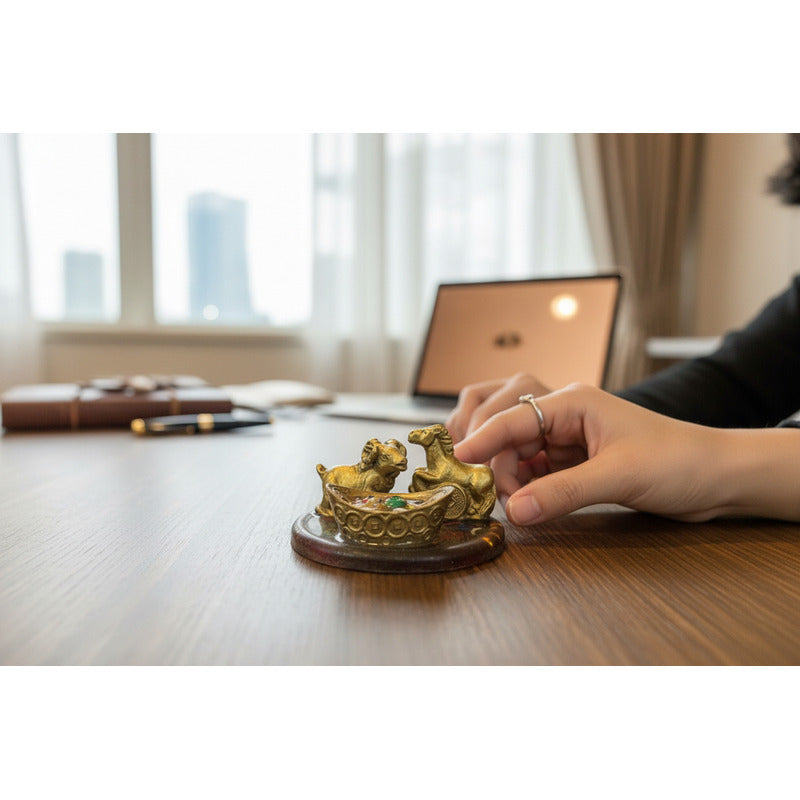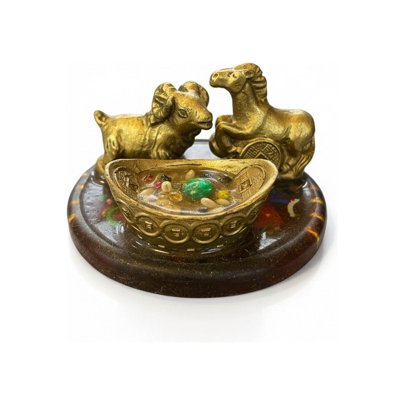 La escultura "Caballo con Cabra en Base Redonda" es una pieza única que combina la elegancia del caballo con la ternura de la cabra, representando la armonía entre dos animales emblemáticos. Fabricada en resina de alta calidad, esta obra de arte de 6 cm de largo, 3 cm de ancho y 3 cm de altura, es ideal para quienes buscan un amuleto que simbolice la fuerza y la protección. El diseño de la base redonda translucida resalta la belleza de la escultura, permitiendo que la luz juegue con sus formas y colores. Con un peso de solo 40 g, es fácil de colocar en cualquier espacio, ya sea en una oficina, un hogar o como parte de una colección de arte. Este amuleto es perfecto para quienes celebran el Año Chino y desean atraer buena fortuna y prosperidad. Su temática, que une a dos animales significativos, lo convierte en un regalo ideal para amigos y familiares que valoran la cultura y la simbología.