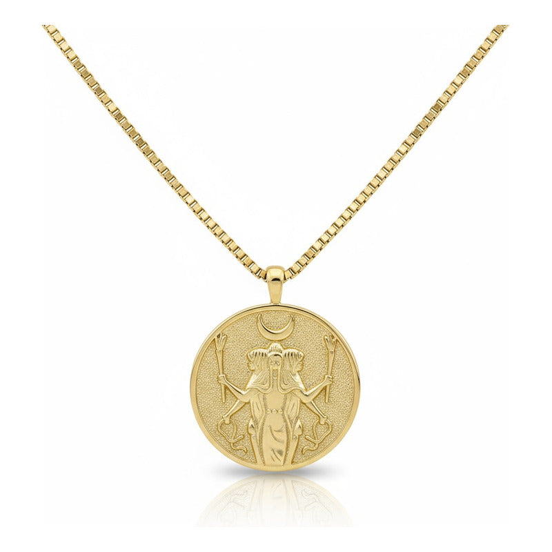 Triple Diosa Medalla Dorada Hecate Celta Con Cadena Dorado Dorada