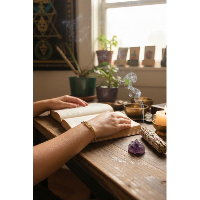 La Esclava de Tumbaga Grabada con el Om Mani Padme Hum es un accesorio que fusiona la elegancia con la espiritualidad. Fabricada en tumbaga, este material ofrece una durabilidad excepcional y un acabado grabado que resalta su diseño étnico y profundo significado. La inscripción del mantra budista, que simboliza la compasión y la sabiduría, la convierte en una pieza única que trasciende lo meramente estético. Con un peso de 30 g, esta pulsera es ligera y cómoda para el uso diario. Su talla mediana se adapta a la mayoría de las muñecas, y su cierre tipo broche asegura un ajuste perfecto. Diseñada para adultos y sin distinción de género, es una opción versátil que complementa cualquier estilo. Ideal para quienes buscan un accesorio que no solo embellezca, sino que también aporte un sentido de conexión espiritual. La Esclava de Tumbaga es perfecta para meditar, practicar yoga o simplemente llevar un recordatorio de paz y armonía en la vida cotidiana.