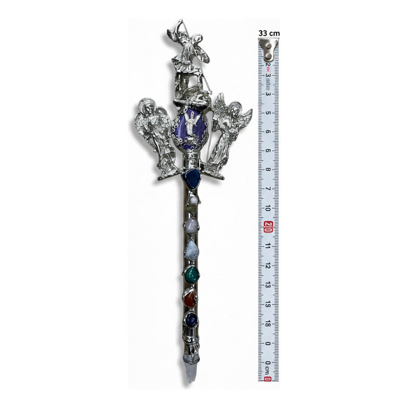 Vara De Poder Arcangeles Con Cuarzo Niquelado 33cm Estimado Agata Morada