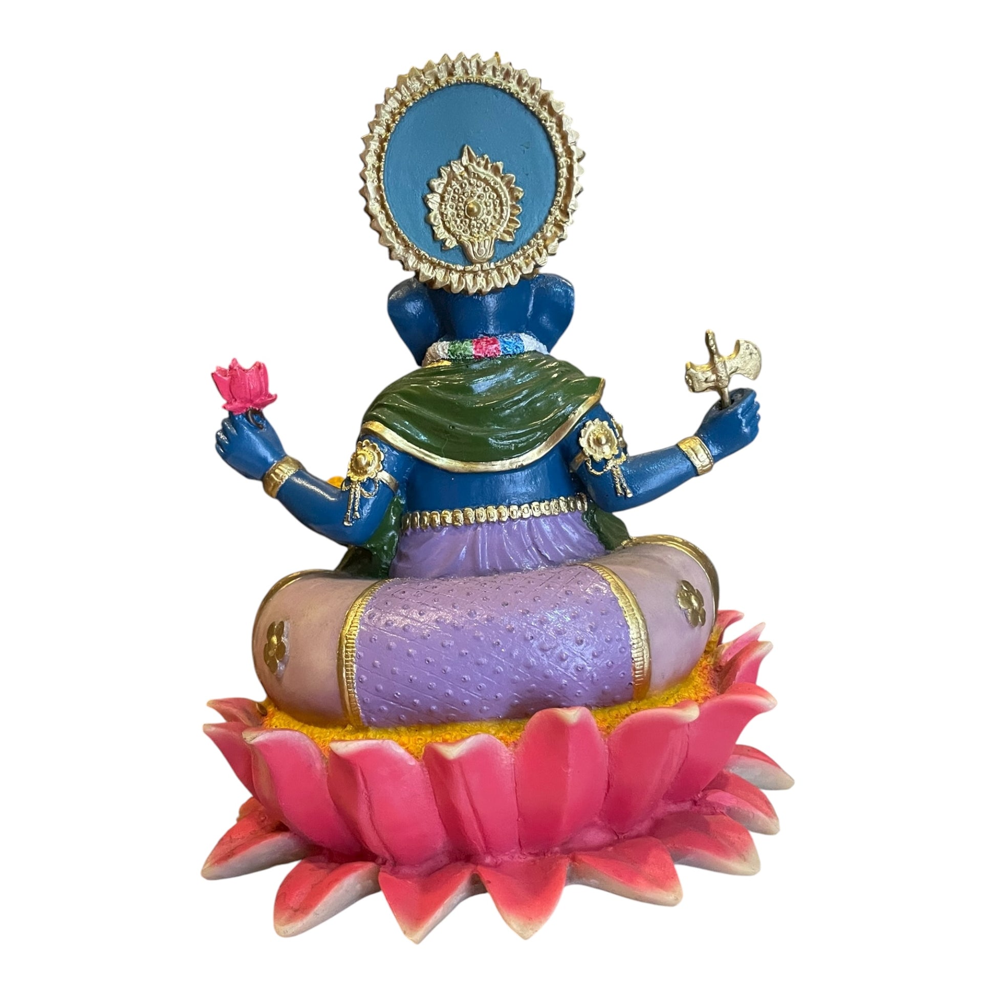 Ganesh Flor De Loto Figura En Resina Nacional 19 Cm Pintado