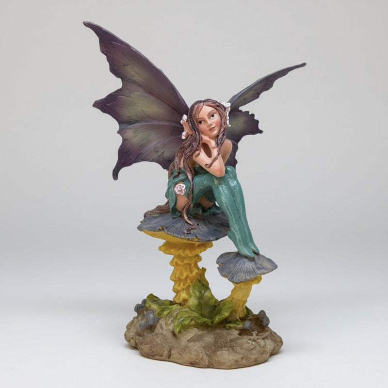 Hada Sentada En Hongo 16 Cm Resina Mexicana